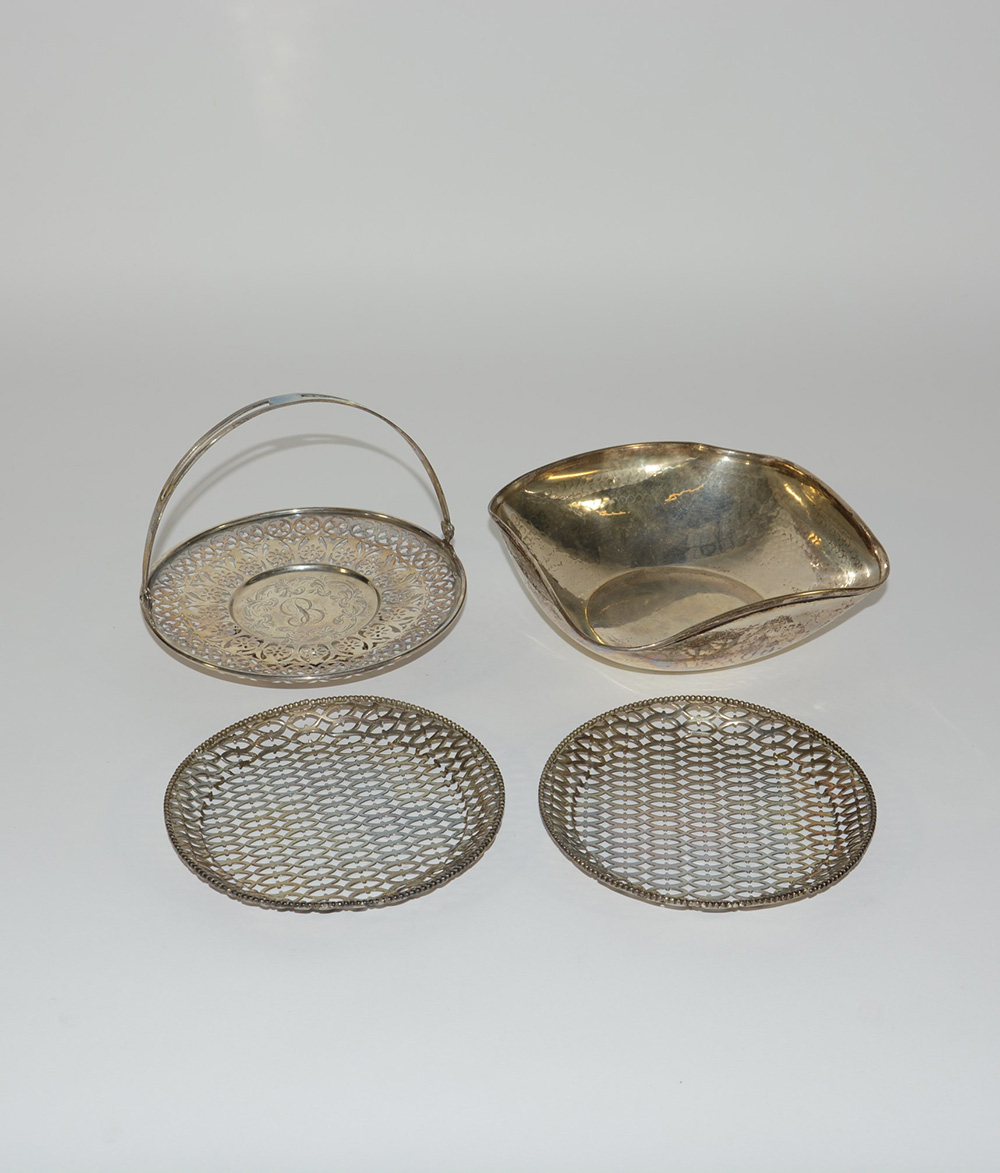 Lotto composto da una ciotola, due piattini e un' alzatina traforata (gr 430)