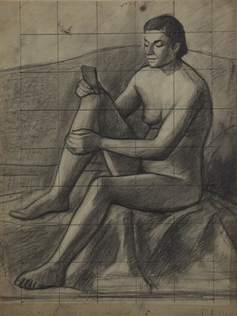 Borra Pompeo. "Studio per nudo femminile" Carboncino su carta (cm 45x32)....