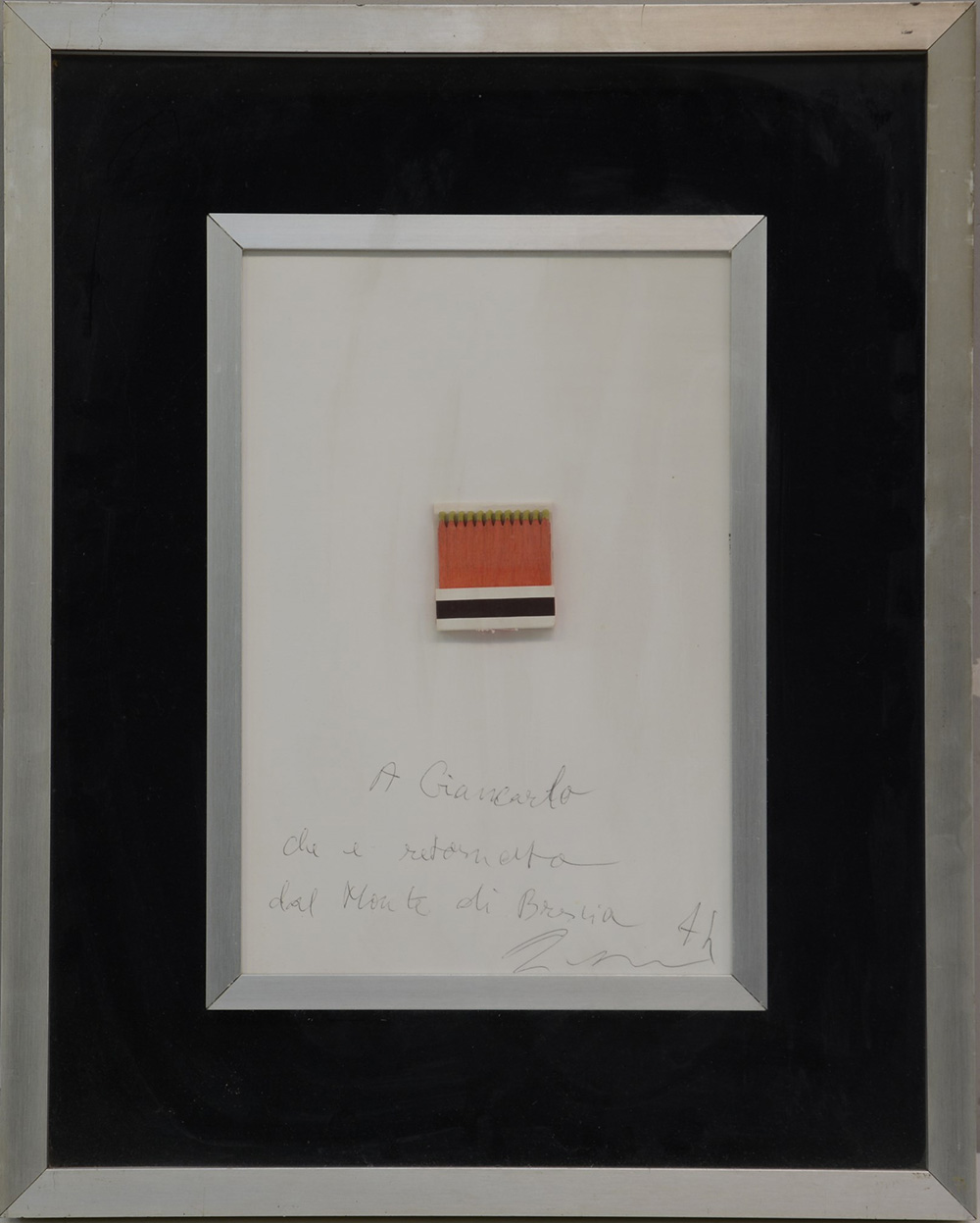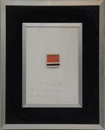 Firma indecifrata "A Giancarlo Ö" assemblage su carta (cm 30x20) firmato e datato in basso a destra. In cornice
