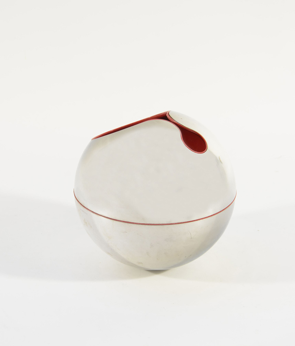 Gio Pomodoro Orciano Di Pesaro (1930- Milano 2002) "Guscio n. 1" scultura in acciaio nossidabile e polipropilene. Multiplo numerato "AGR 011". Produzione Alessi, disegno 1972, firmato e marcato (d cm 19) Bibliografia: "Forme 52", aprile 1974, copertina; Catalogo Officina Alessi 1985, p. 46