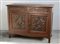 Credenza in legno dolce a due sportelli e due cassetti con pannelli intagliati (cm 131x100x53) (difetti)