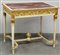 Tavolino da centro stile Luigi XVI in legno laccato bianco con rilievi in oro, gambe rastremate riunite da traversa, piano in marmo rosso (cm 90x80x65) (difetti)