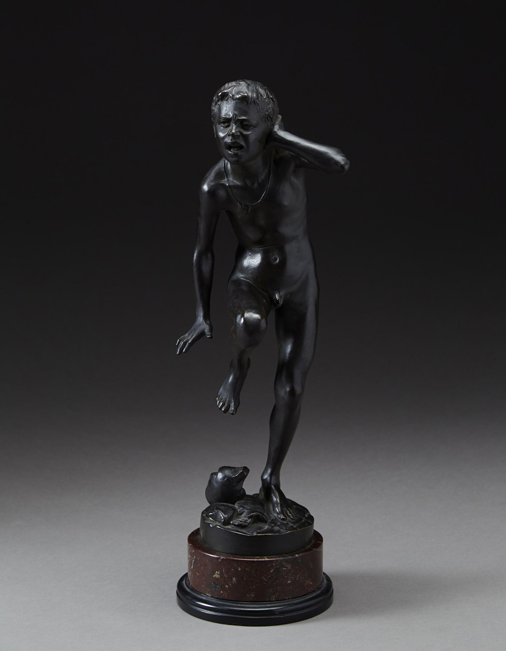 Michele Tripisciano Caltanissetta (1860- 1913) "Cocci rotti" scultura in bronzo (h cm 38) poggiante su base in marmo Firmata al retro (difetti)