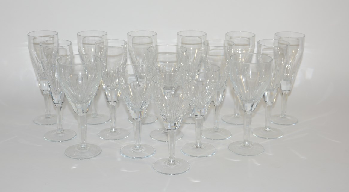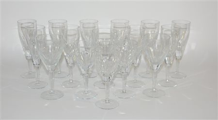 Lotto composto da sedici bicchieri in vetro di misure diverse (lievi difetti)
