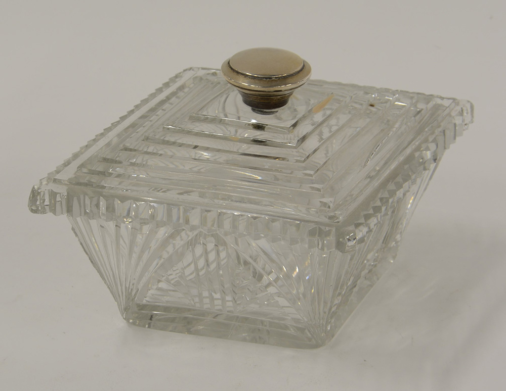 Scatola con coperchio in cristallo molato con pomolo in argento