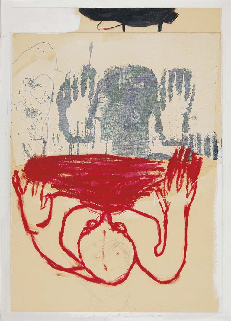 PALADINO MIMMO Paduli (Bn) 1948 Senza Titolo 1993 tecnica mista su cartone applicato su tavola Misure: 122,5x90,5 firma e data in basso autentica opera riconosciuta dal maestro Paladino come propria conferma di autenticità tramite email provenienza Flora Bigai Arte Moderna e Contemporanea Venezia