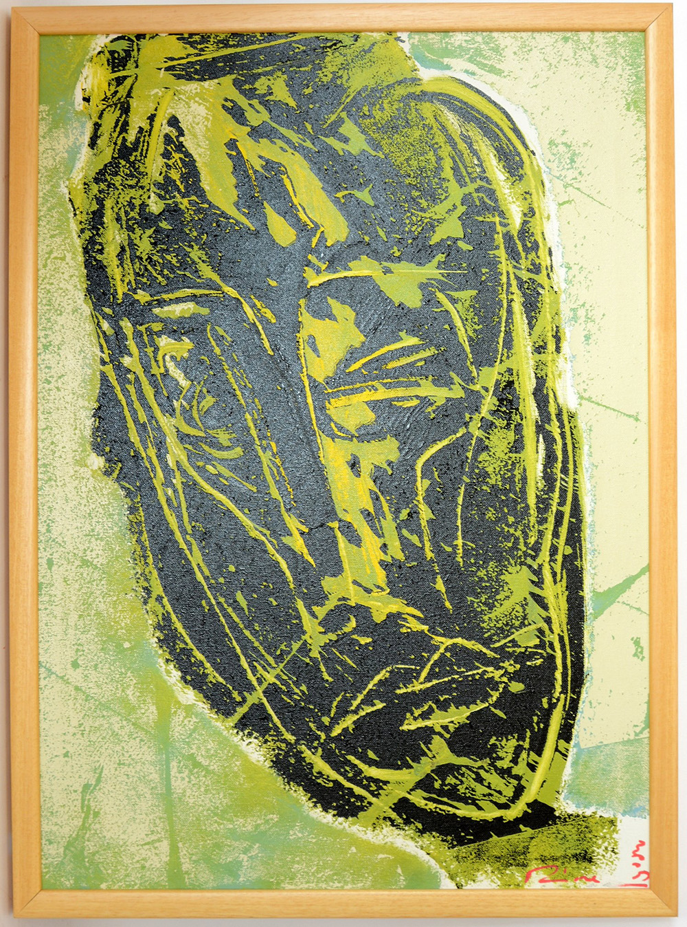 Firma indecifrata "Composizione astratta" tecnica mista su tela (cm 70x50), firmato in basso ed al verso, reca etichetta ArteInvest "Fiore G."al verso. In cornice