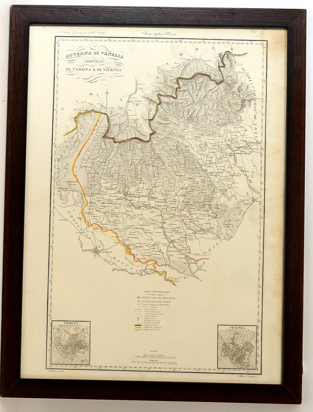 Lotto 1613 | Stampa raffigurante carta dei territori di Verona e Vicenza (cm 55x40). In...