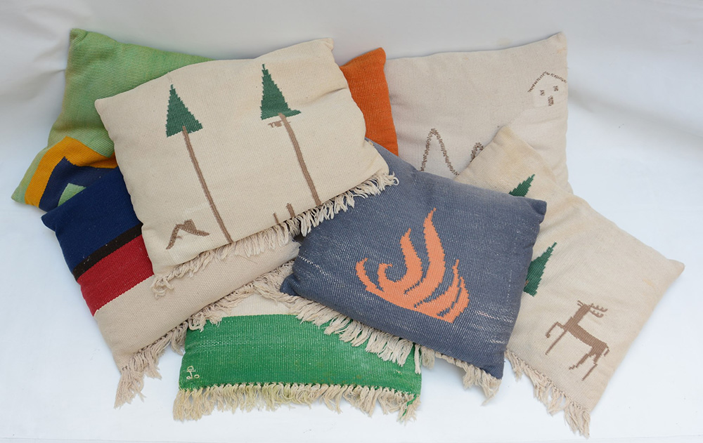 Lotto composto da otto cuscini con decori e misure diverse (difetti) Provenienza: Ca' del Fogher, Cortina. Progettata dall' Architetto Pier Giulio Magistretti.