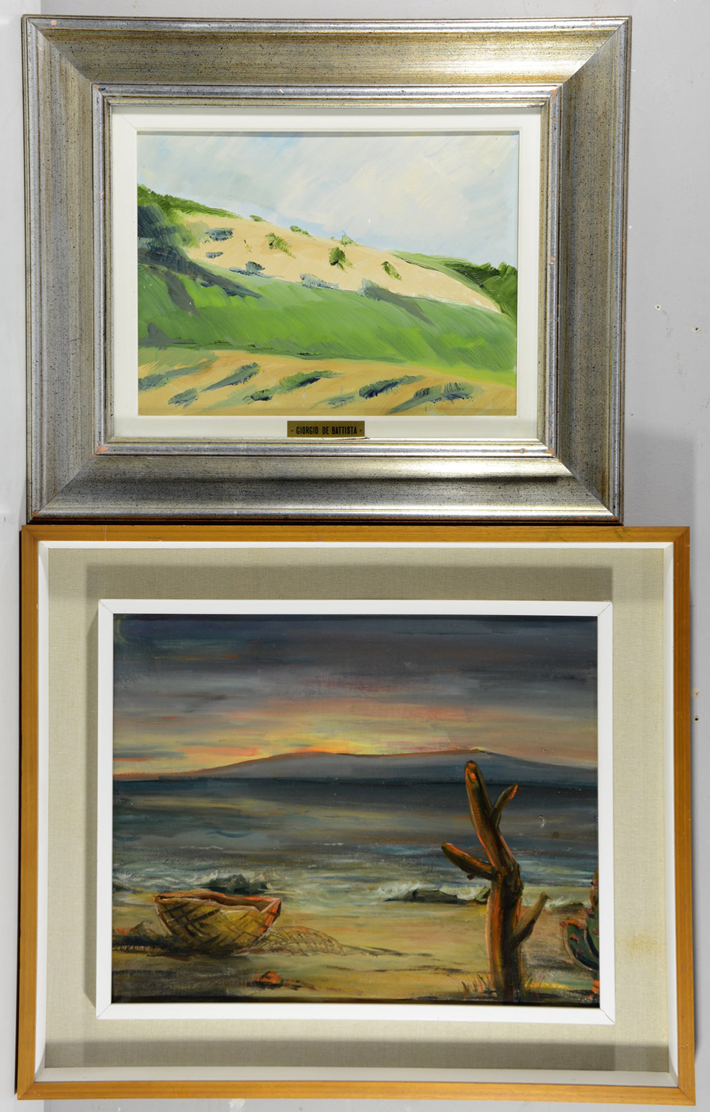 Firme indecifrate "Paesaggi" lotto composto da due dipinti ad olio su tela, misure diverse. In cornici