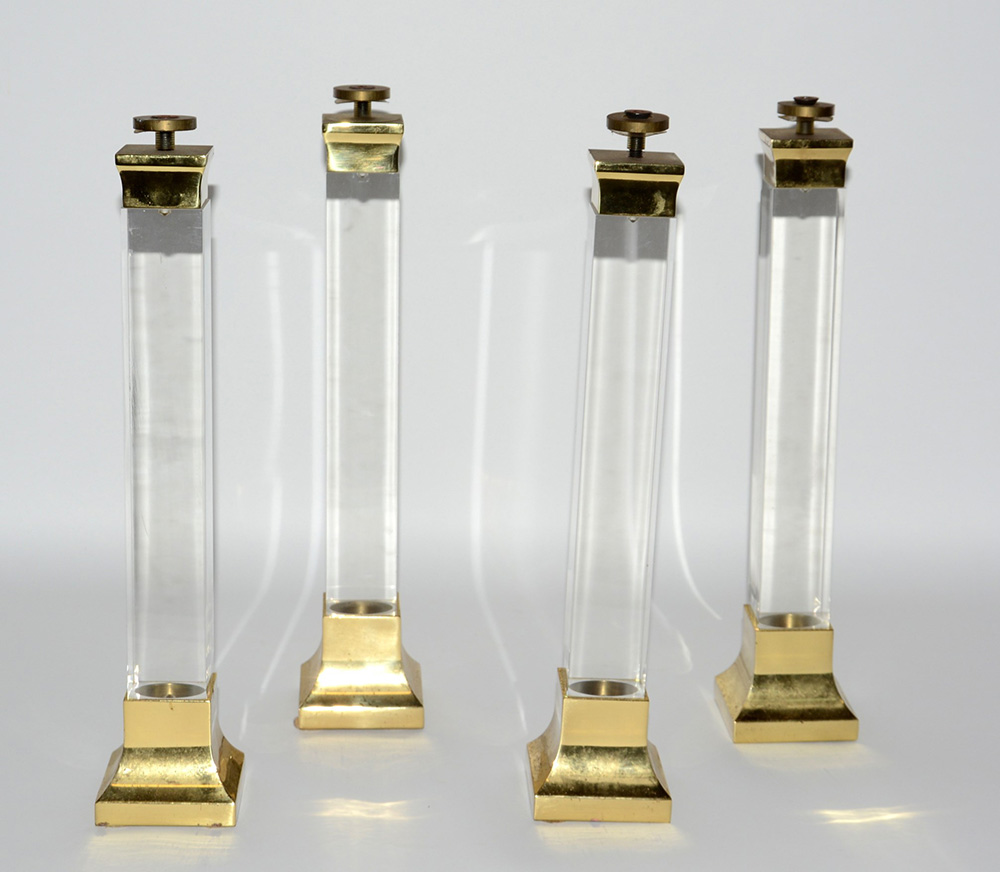 Gruppo di Quattro gambe per tavolino a forma di colonna a forma di colonna in plexiglass con base e capitelli in bronzo (h.† cm 41) (difetti)