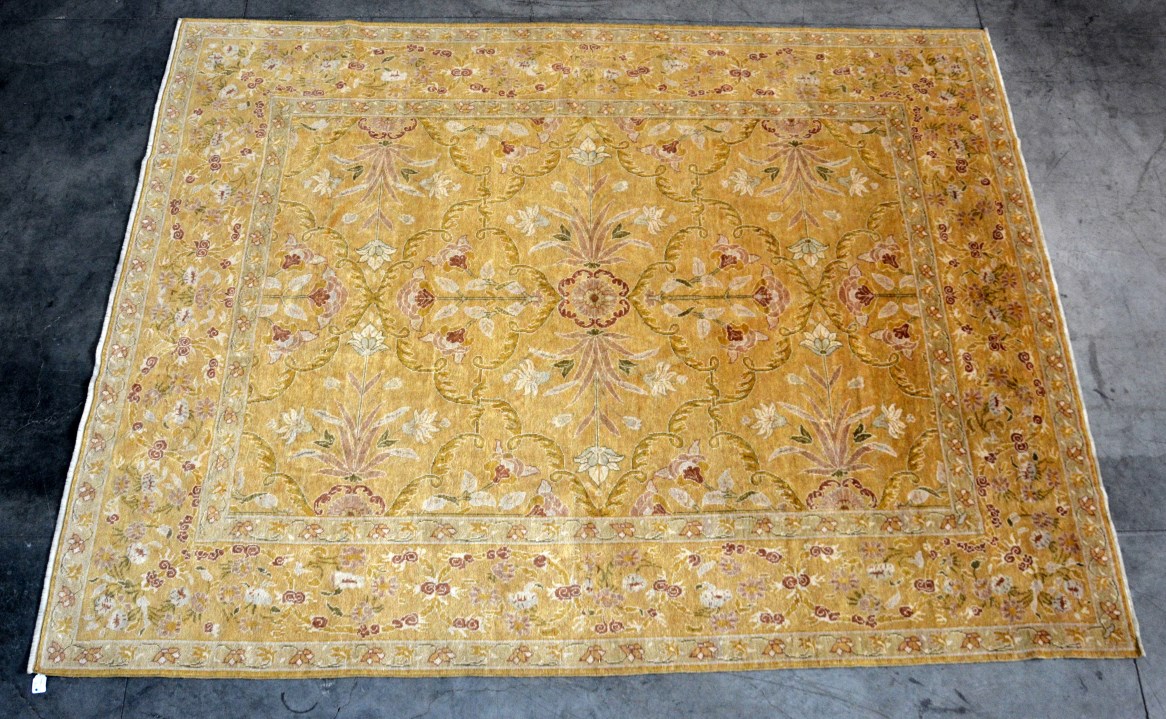 Tappeto comtemporaneo, Turchia (?). Decoro floreale di ispirazione occidentale su fondo beige, due marchi al verso (cm 320x256) (difetti)