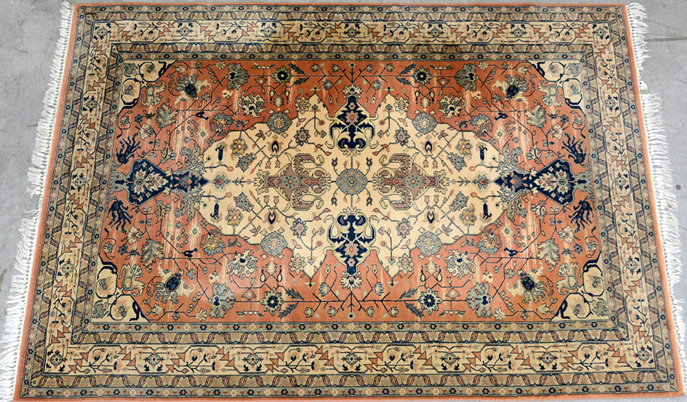 Tappeto meccanico con disegno orientale nei toni del rosa e bianco (cm 240x173) (difetti)