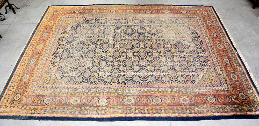 Tappeto Mahal, Persia secolo XX. Disegno "all-over" su fondo blu (cm 423x318) (difetti)