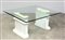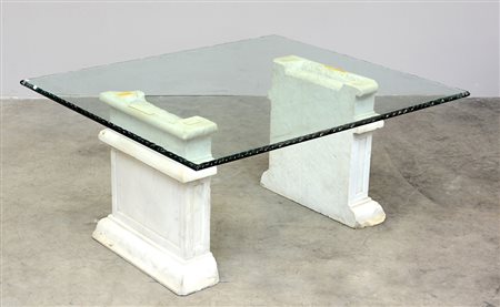 Tavolino da salotto con basi in marmo e piano in cristallo molato (cm 104x48x93)