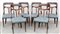 Gruppo di sei sedie con schienale a giorno sagomato e cartella intarsiata, gambe mosse. Esecuzione italiana anni 50