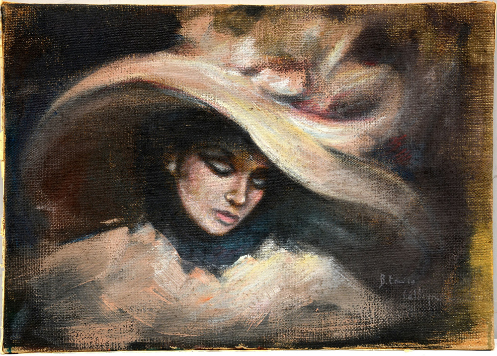 Bruno Emilio Callegari "Figura femminile con cappello" olio su tela (cm 50x70) firmato in basso a destra