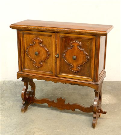 Mobiletto a due ante pennellate, gambe e traverse sagomate (cm 88x92x34)...