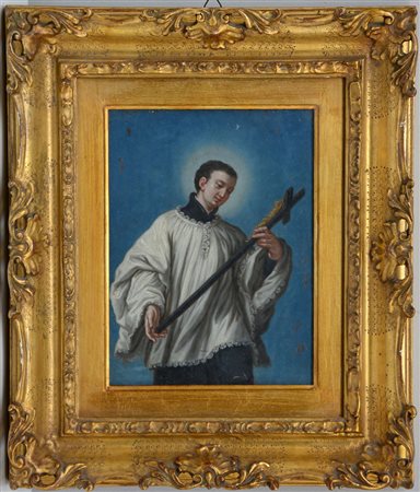 Scuola del sec. XVIII - "Chierico con crocefisso", olio su rame (cm 24x18),...