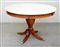 Tavolo tondo con fascia intarsiata a motivi vegetali, gamba centrale tornita...