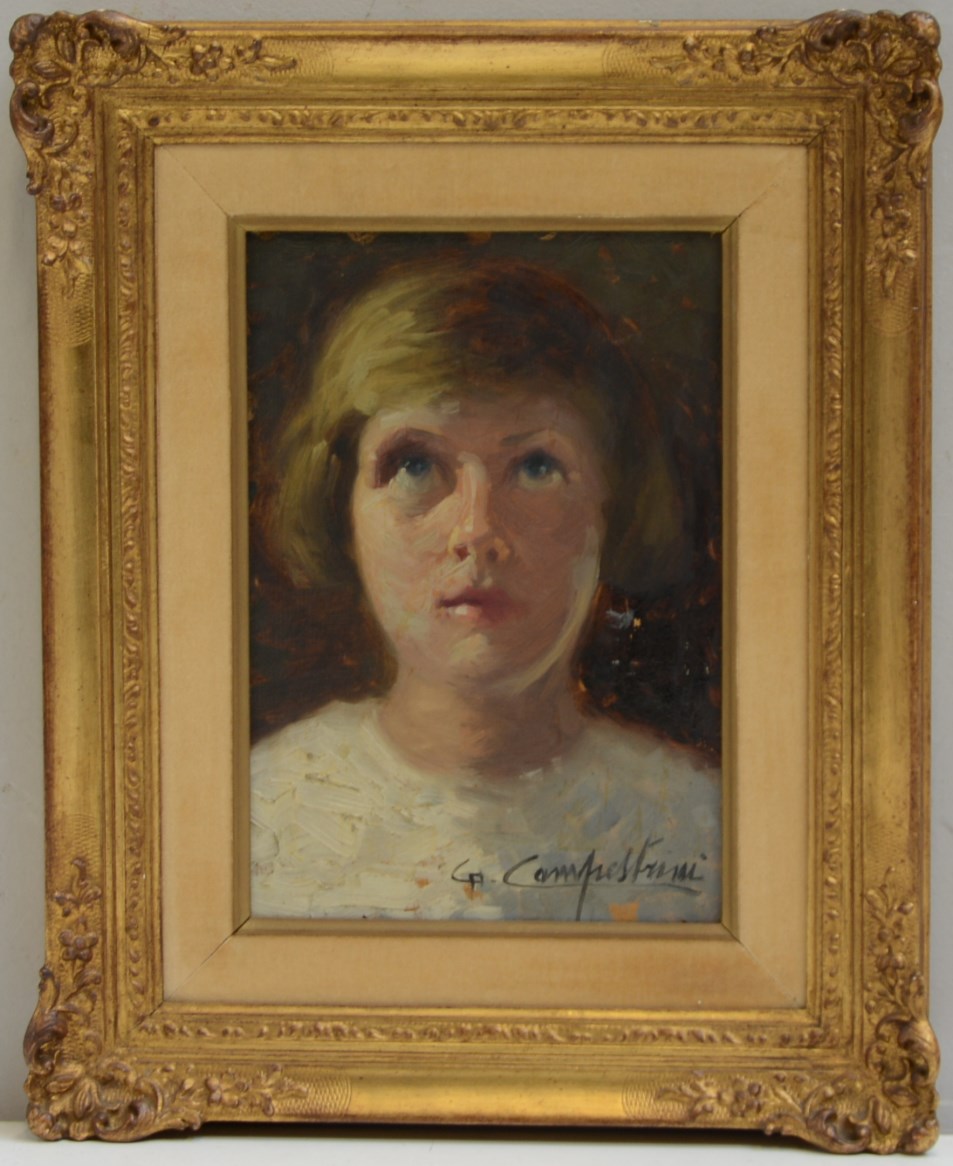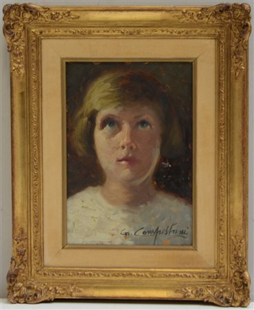 Gianfranco Campestrini Milano (1901- 1979) "Ritratto di bimba" olio su cartone (cm 27x18.5) Firmato in basso a destra. In cornice (difetti)