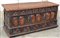 Antica cassapanca spagnola in noce con fronte e fianchi riccamente intagliati...
