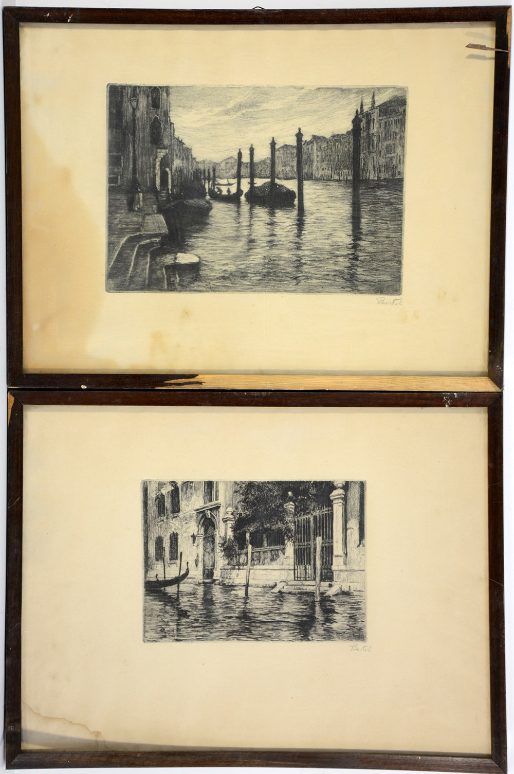 Bartoli "Scorci di Venezia", lotto di due acqueforti (fogli cm 35x46), in cornici (difetti)