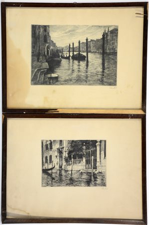Bartoli "Scorci di Venezia", lotto di due acqueforti (fogli cm 35x46), in...