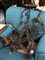 Lampadario a sei fiamme in metallo laccato nero on braccia decorate ad animali fantastici e volute (difetti)