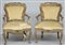 Coppia di poltrone in oro e velluto con schienale e montanti intagliati e...