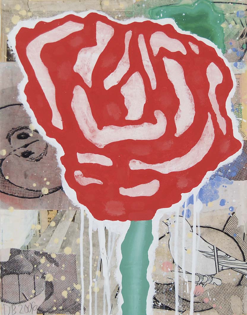 BAECHLER DONALD Hartford (Connecticut) 1956 Red Flower 2006 tecnica mista e collage su carta Misure: 59,5x47 firma e data in basso a sinistra firma data e titolo al retro autentica dell'Autore su foto provenienza Donald Baechler Studio New York - timbro su autentica