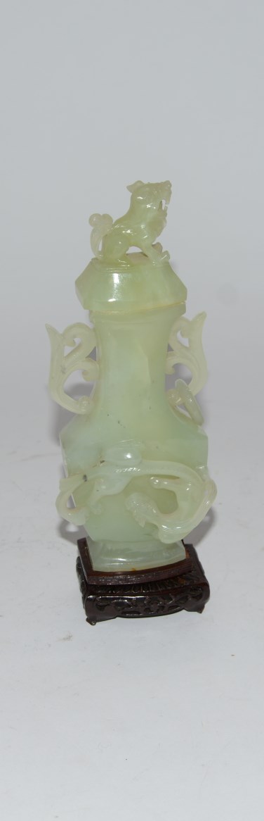 Lotto 1911 | Vaso in stile arcaico in giada con base in legno, in scatola originale (gravi...