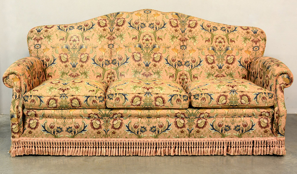 Divano imbottito a tre posti con schienale sagomato rivestito in tessuto a fiori