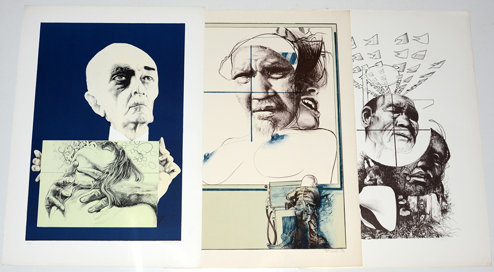 Tredici, gruppo di tre serigrafie di misure e tirature diverse, firmate, numerate e datate in basso, anni 70 (lievi difetti)