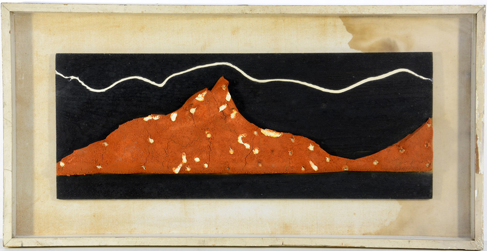Wallert Dieter Germania (1935- 1988) "Fondo marino", composizione polimaterica (cm 28x72,5), etichetta a tergo della Galleria del Minotauro di Brescia, in cornice (difetti)