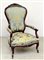 Poltrona di forma sagomata con cimasa intagliata a fiori e foglie, braccioli...