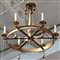 Lampadario a sei luci in bronzo decorato con pendagli e catene perlinate....
