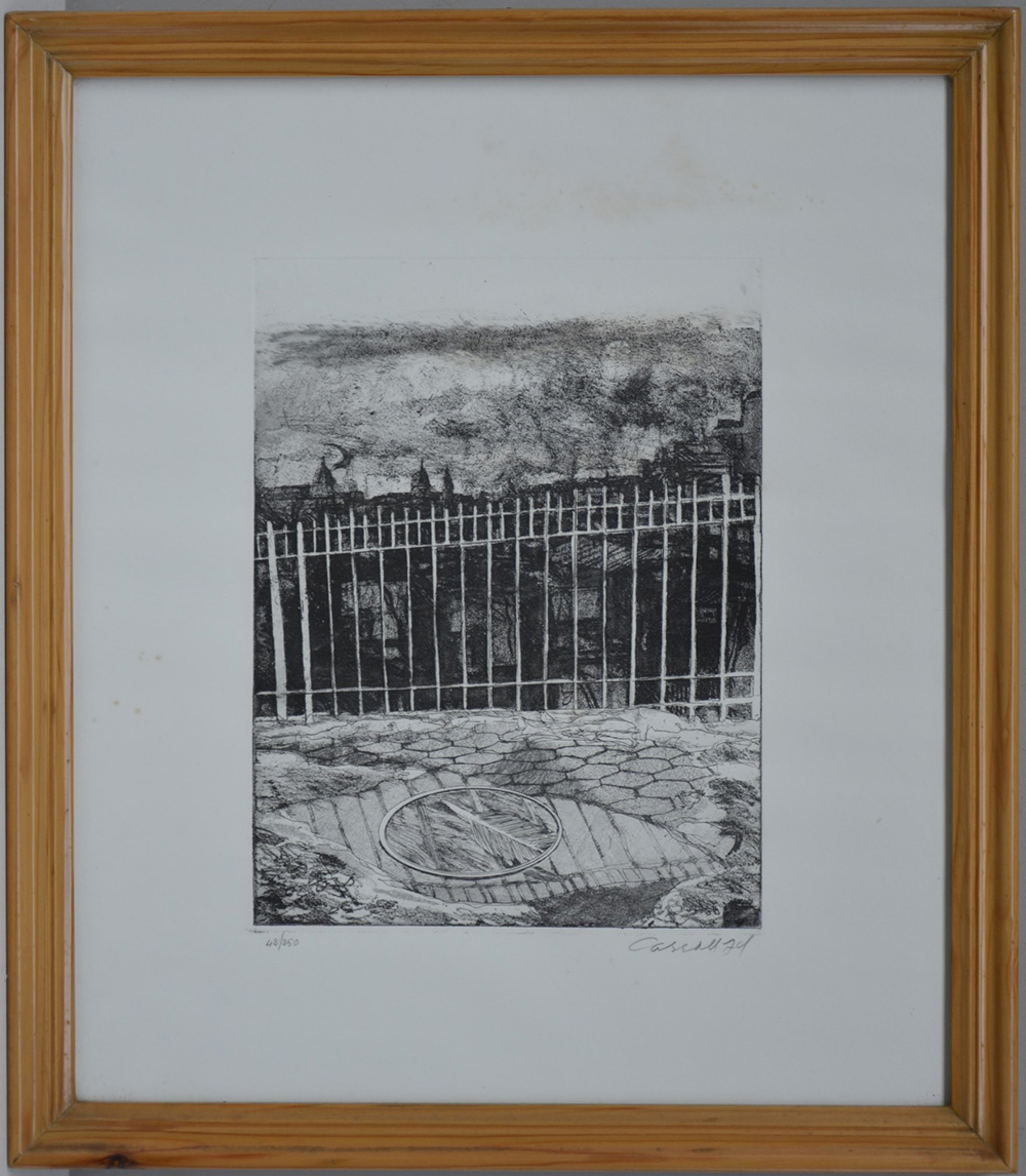 Firma indecifrata "Veduta dalla terrazza" acquaforte (cm 50x42) tiratura 42/250 (lievi difetti)