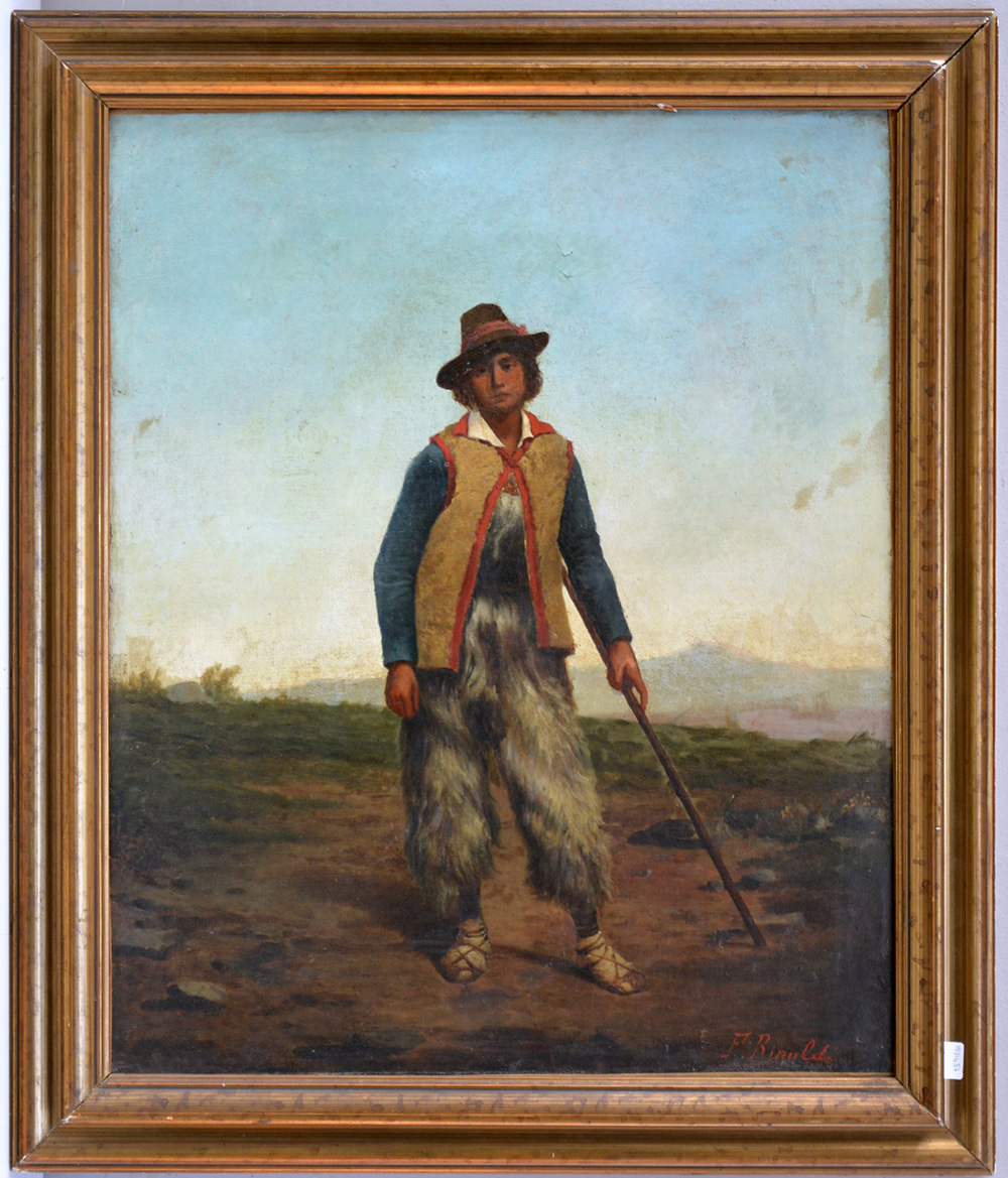 Firma indecifrata. "Pastorello", olio su tela (cm 61x51). Firmato in basso a destra. In cornice (difetti)