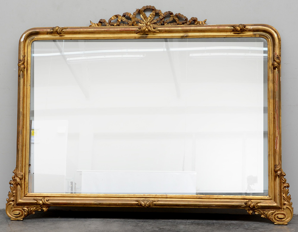 Specchiera rettangolare in legno dorato con cimasa intagliata e traforata. Fianchi e piedi intagliati a motivi vegetali. Fine sec. XIX (140x172) (difetti)
