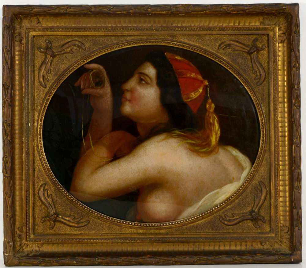 Scuola del sec. XIX "Odalisca" fixË su vetro ovale (cm 35,5x45) In cornice (lievi difetti)