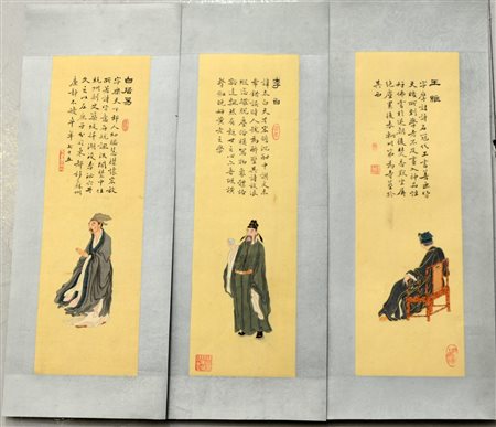 Raccolta di ritratti dei pi˘ importanti poeti cinesi della Dinastia Tang (30x50cm.) (difetti)