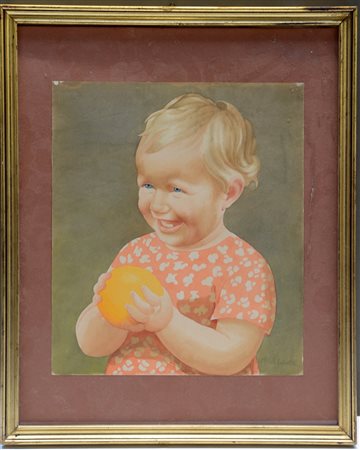 Ignoto "Bambino con palla" tecnica mista su carta (cm 36x31) recante firma...