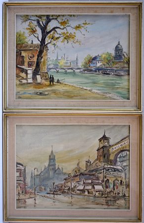 Ignoto. "Scorci di citt‡", coppia di dipinti su cartone telato (cm 30x40). In...