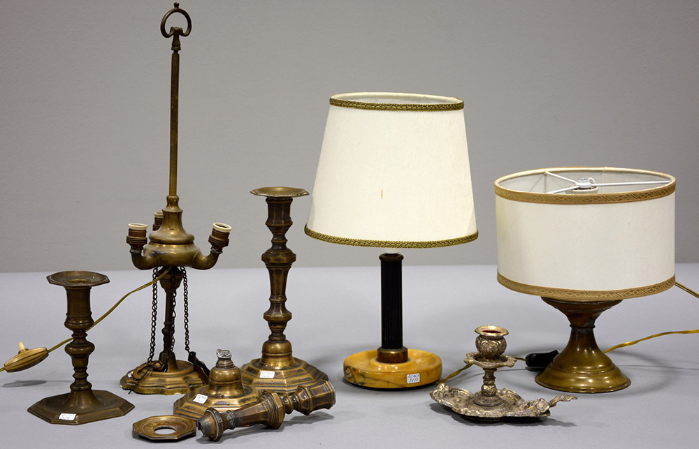 Lotto 2148 | Lotto composto da sette candelieri di materiali e misure diverse (difetti e...