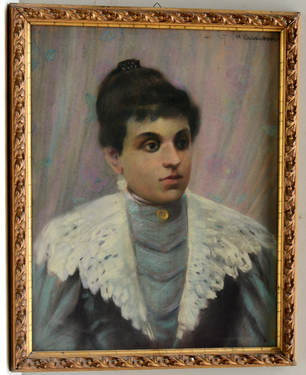 Firma indecifrata, antico dipinto a pastelli su carta raffigurante ritratto femminile (cm 61x48). In cornice (lievi difetti)