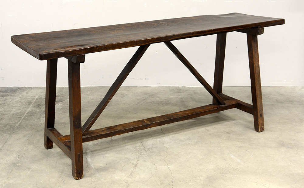 Lotto 2182 | Tavolo a capretta con gambe riunite da traversa (cm 178x79x54)