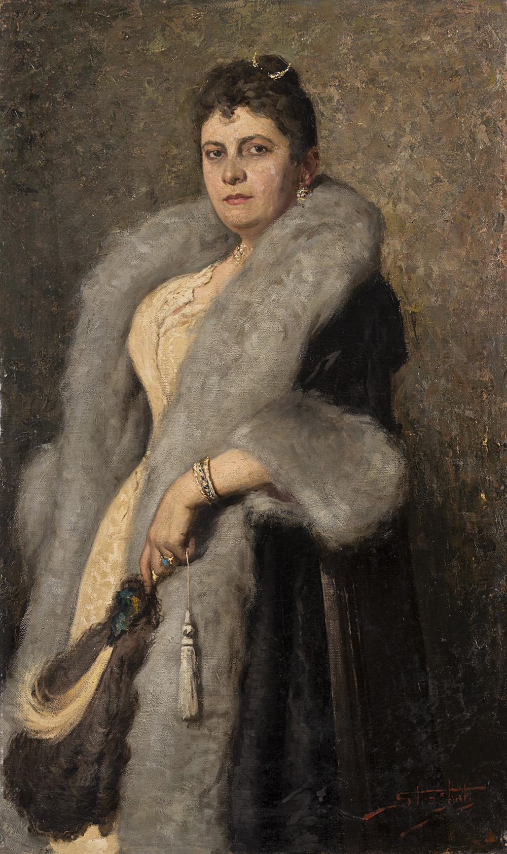Carlo Stragliati Milano (1869- 1925) "Ritratto dell'attrice Giovanna Riccardi" olio su tela (cm 125.5x75.5) Firmato in basso a destra In cornice dell'epoca