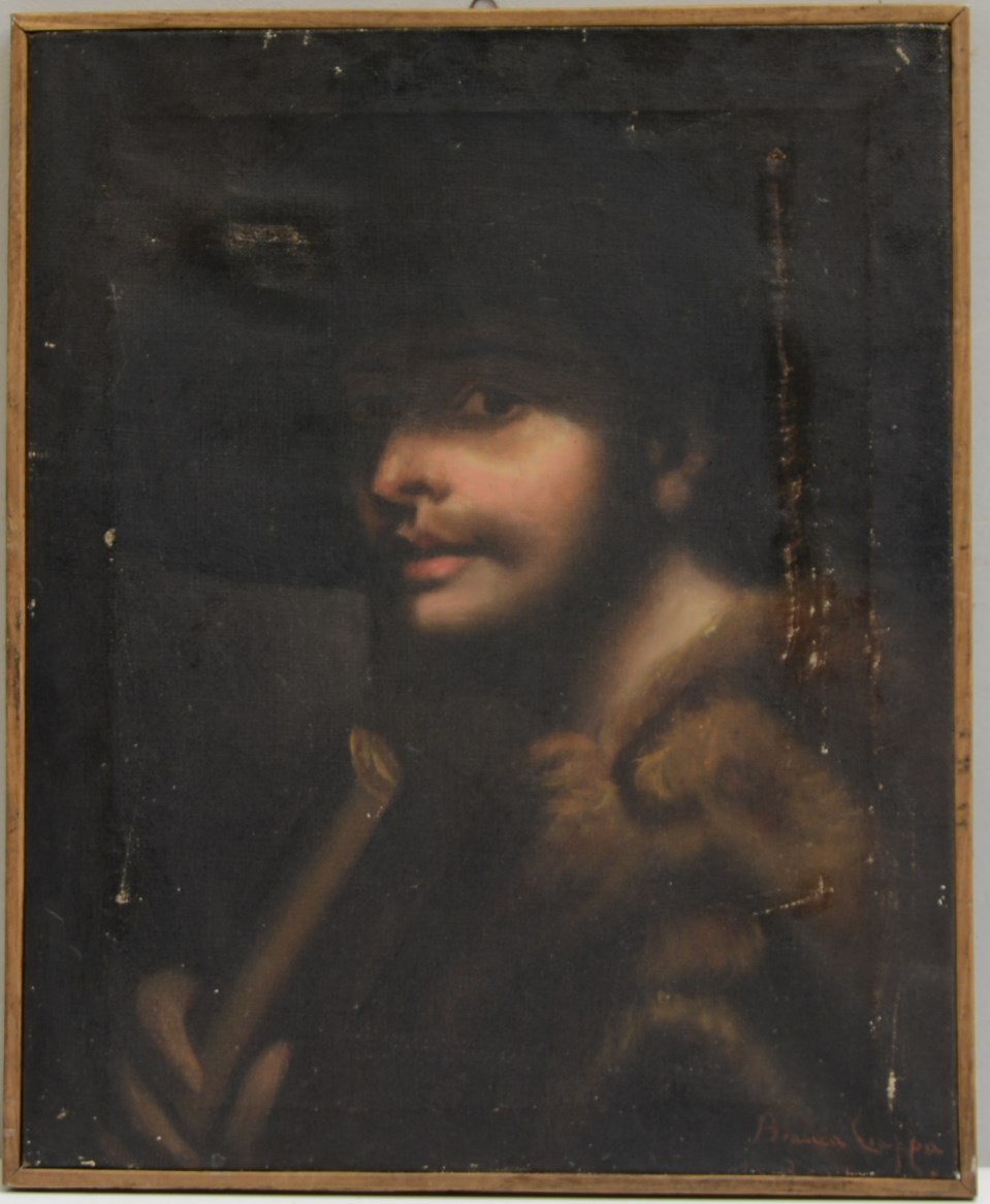 Firma indecifrata "Ritratto virile alla maniera del secolo XVI" olio su tela (cm 46,5x38) firmato in basso a destra. In cornice (difetti)