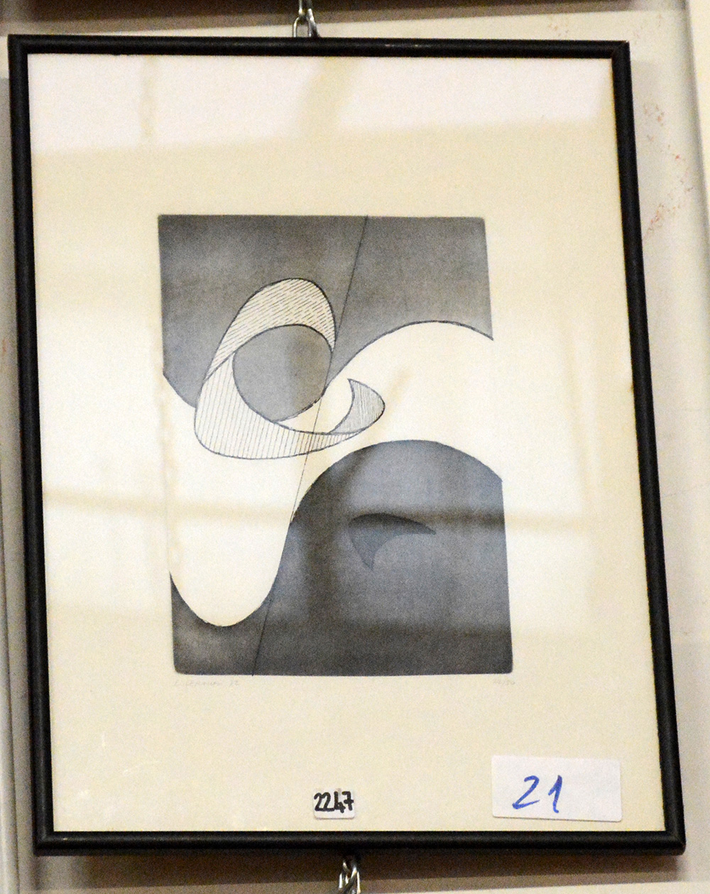 Luigi Veronesi Milano (1908- 1998) "Composizione astratta" acquaforte (cm 49x34 il foglio) esemplare 22/50, firmata e datata 1972 in basso a sinistra. In cornice